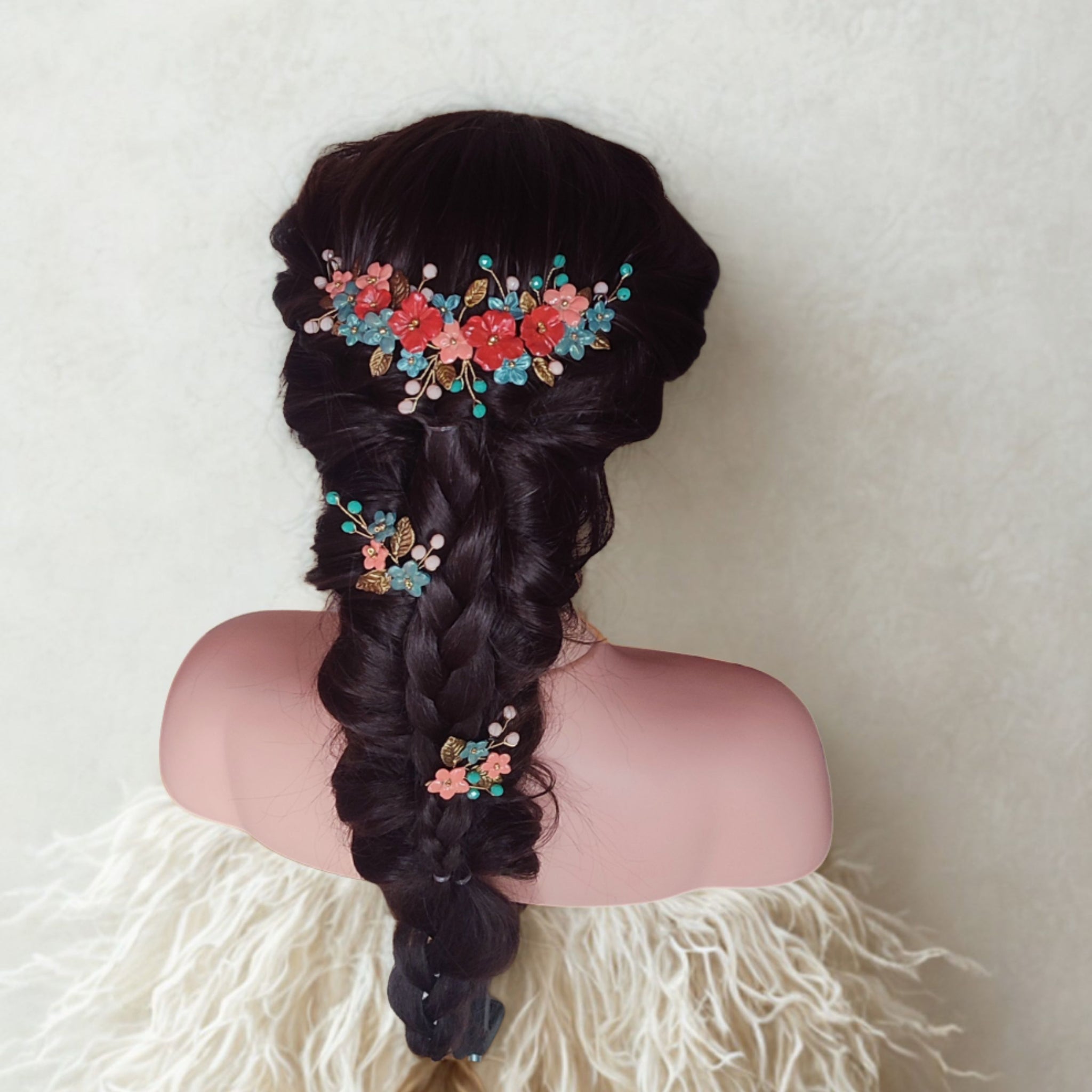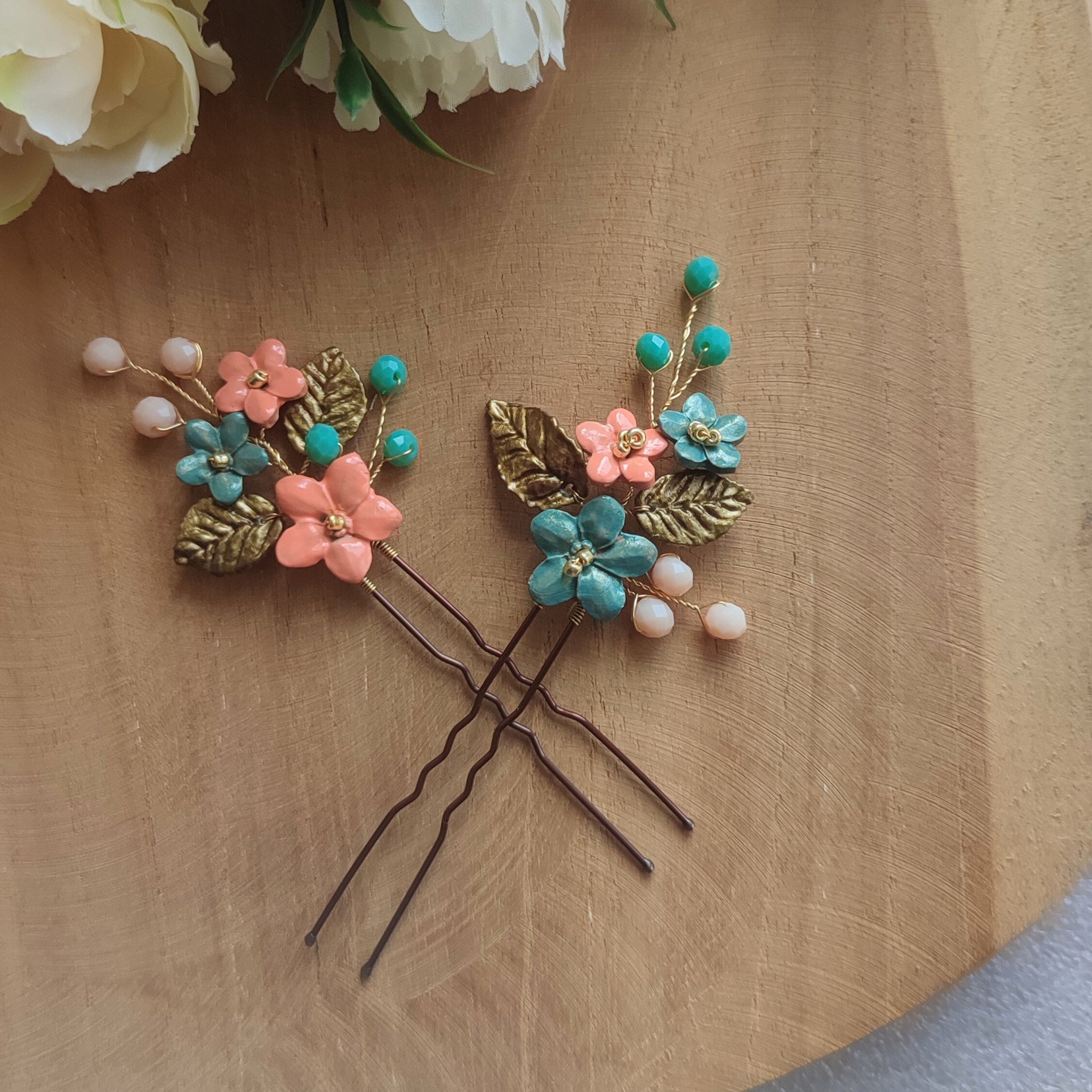 Sublimez votre coiffure de mariage ou de cérémonie avec cet élégant ensemble de bijoux de cheveux aux couleurs d’automne.