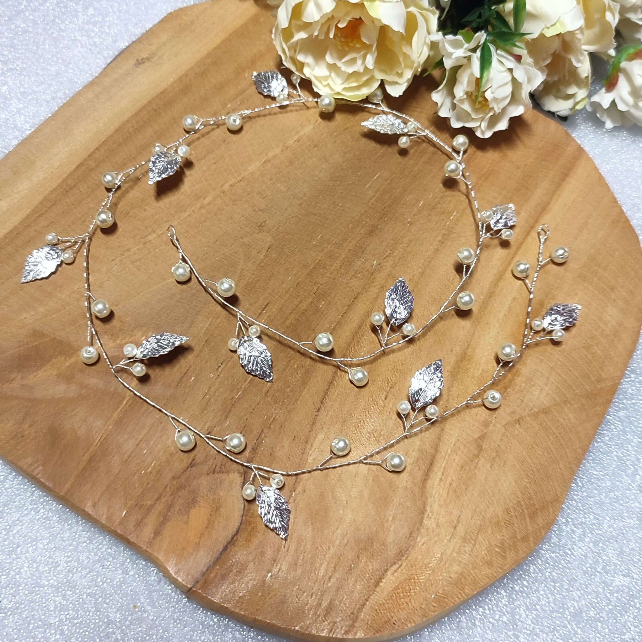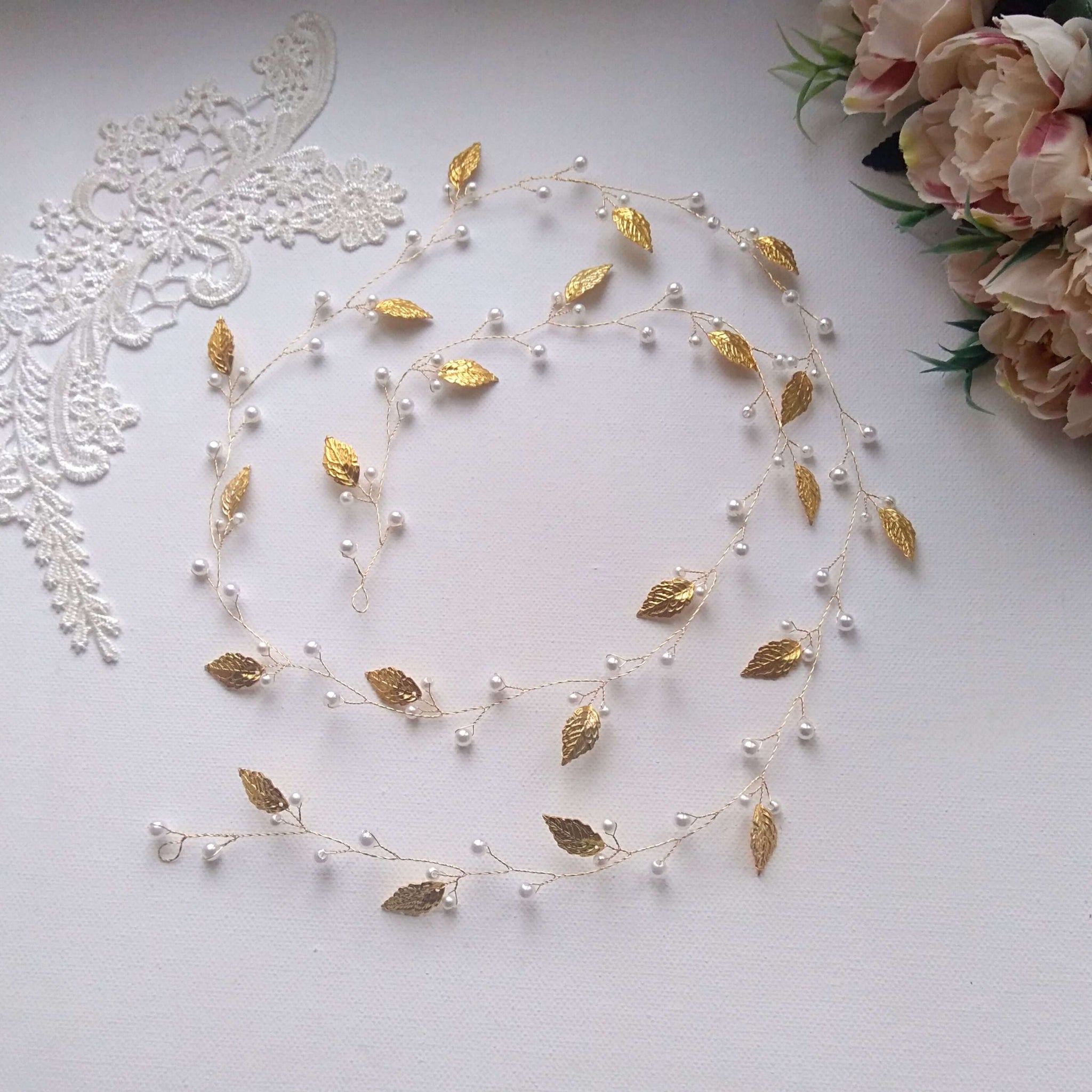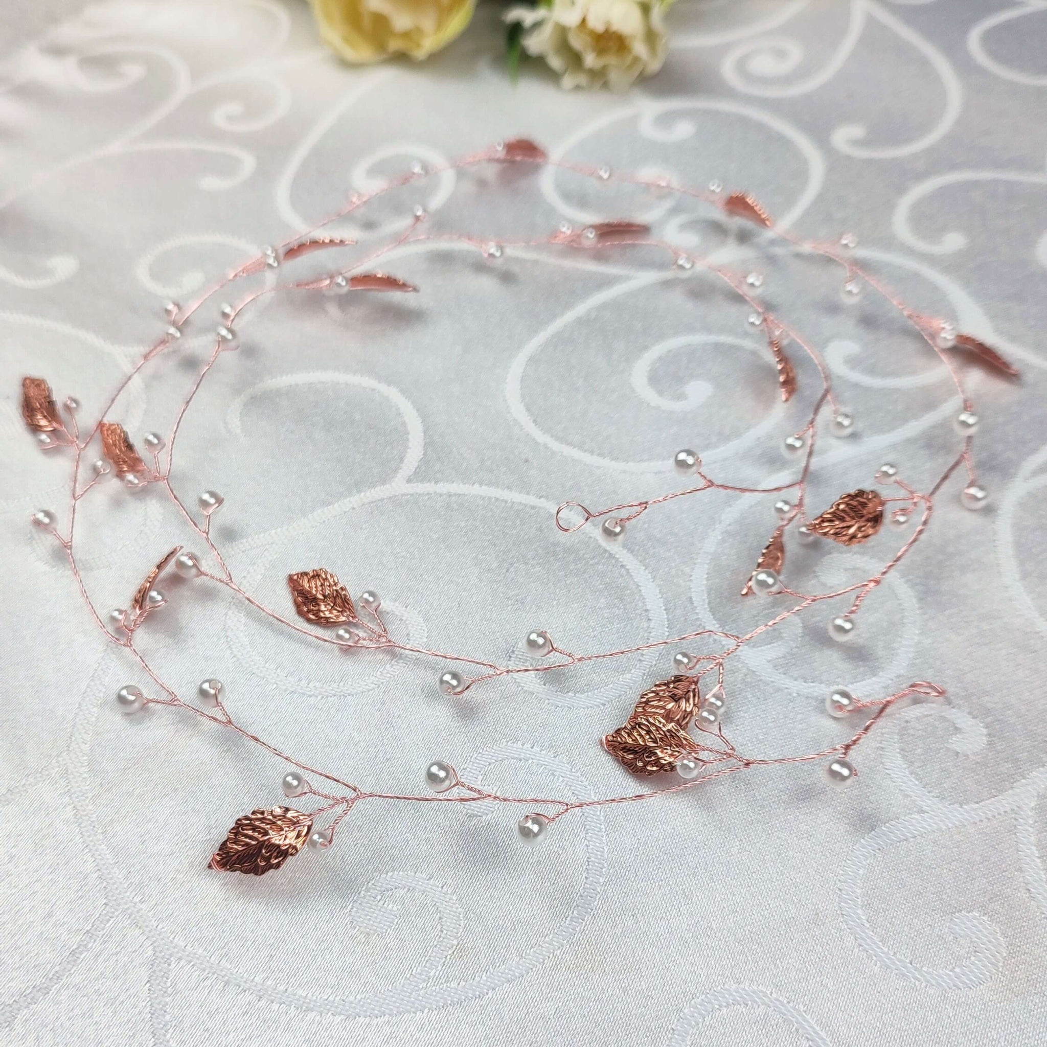 La vigne de cheveux Sybile associe de fines feuilles en laiton à des perles délicates, pour un rendu bohème doux et naturel.